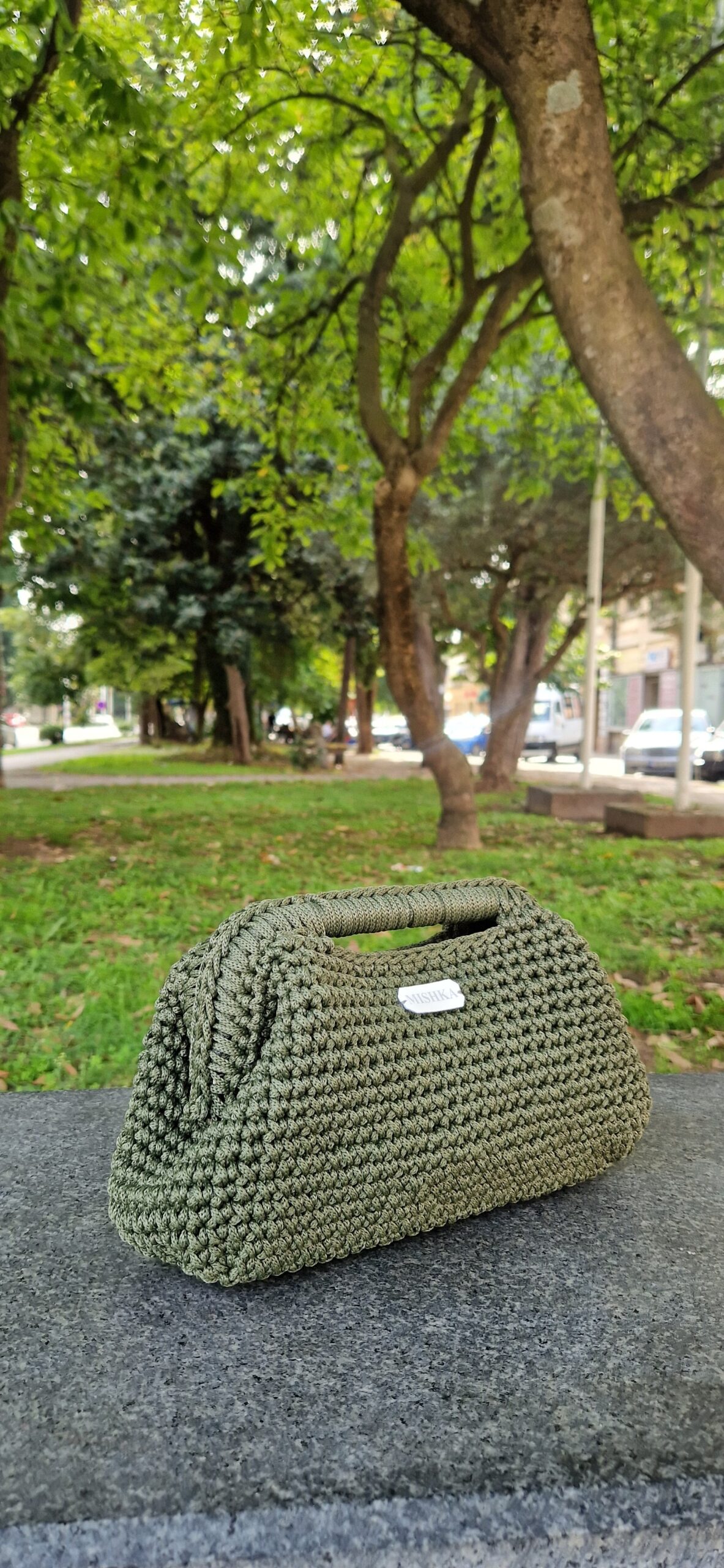 Tamnozelena maslinasta clutch torba s ručkom iz nove kolekcije. Ručno rađena s posebnom pažnjom na detalje. Dovoljno prostrana za sve osnovne stvari – mobitel, novčanik i sitnice – a svojim profinjenim dizajnom savršeno nadopunjuje dnevne i večernje kombinacije.