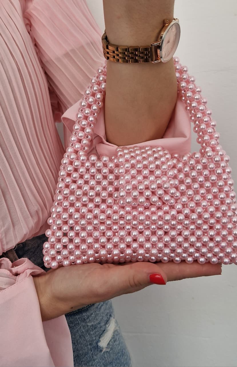 Elegantna mini torbica ručno izrađena od sjajnih perlica u baby pink nijansi. Idealna za večernje izlaske, vjenčanja i posebne prilike. Dovoljno prostora za telefon, ključeve i ruž – maksimalan efekt uz minimalan format.